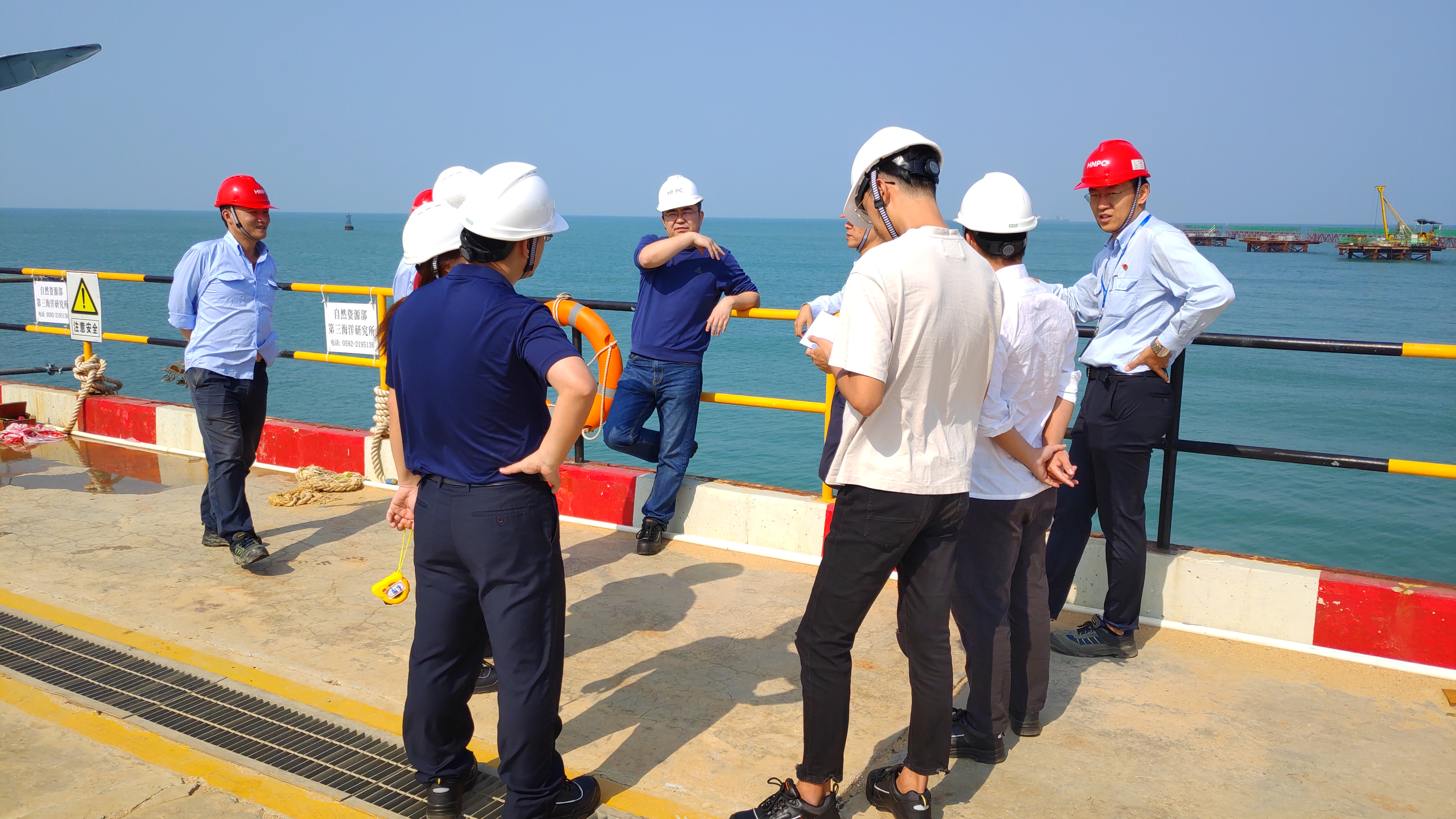 在岸基碼頭,課題組就立體剖面監測系統數據接收站供電、通信、坐底監測系統與相關系統的接口細節、海纜路由及鋪設等相關事宜與海南核電相關負責人及各子課題科研人員開展了討論分析,并明確了初步的實施方案。