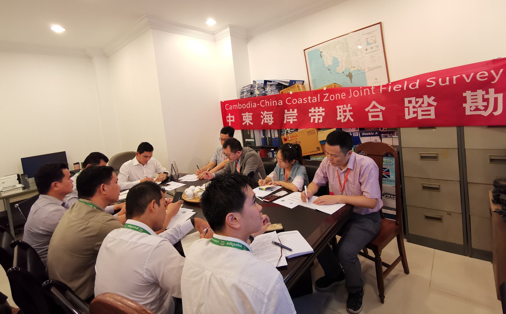 研討會上,工作組受中國海洋發展基金會委托與柬方商討了中國海洋發展基金會與柬埔寨環境部的海洋空間規劃合作文件,柬方高度重視與中國海洋發展基金會合作,柬環境部內部討論后將派高級官員來中國簽署合作文件,雙方就合作編制海岸帶規劃進行了技術研討。