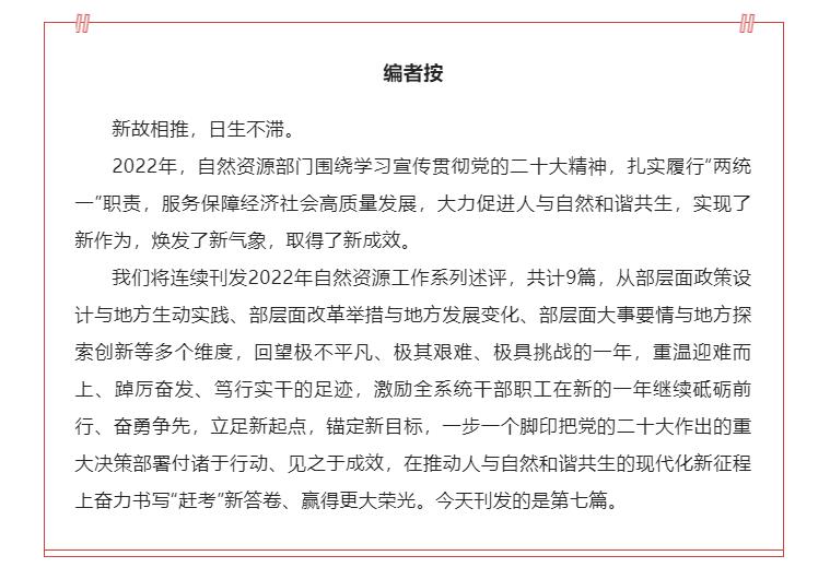 鑒往知來,篤行致遠(yuǎn)。百年變局與世紀(jì)疫情疊加的2022年,自然資源部門履行“兩統(tǒng)一”職責(zé),堅持陸海統(tǒng)籌,強(qiáng)化系統(tǒng)觀念,推動海洋經(jīng)濟(jì)發(fā)展、保護(hù)利用海洋資源、參與全球海洋治理,交出了一份加快建設(shè)海洋強(qiáng)國的答卷。